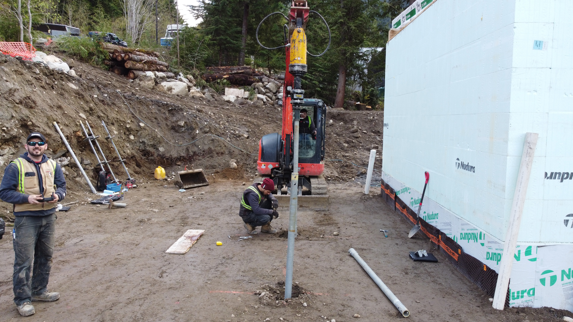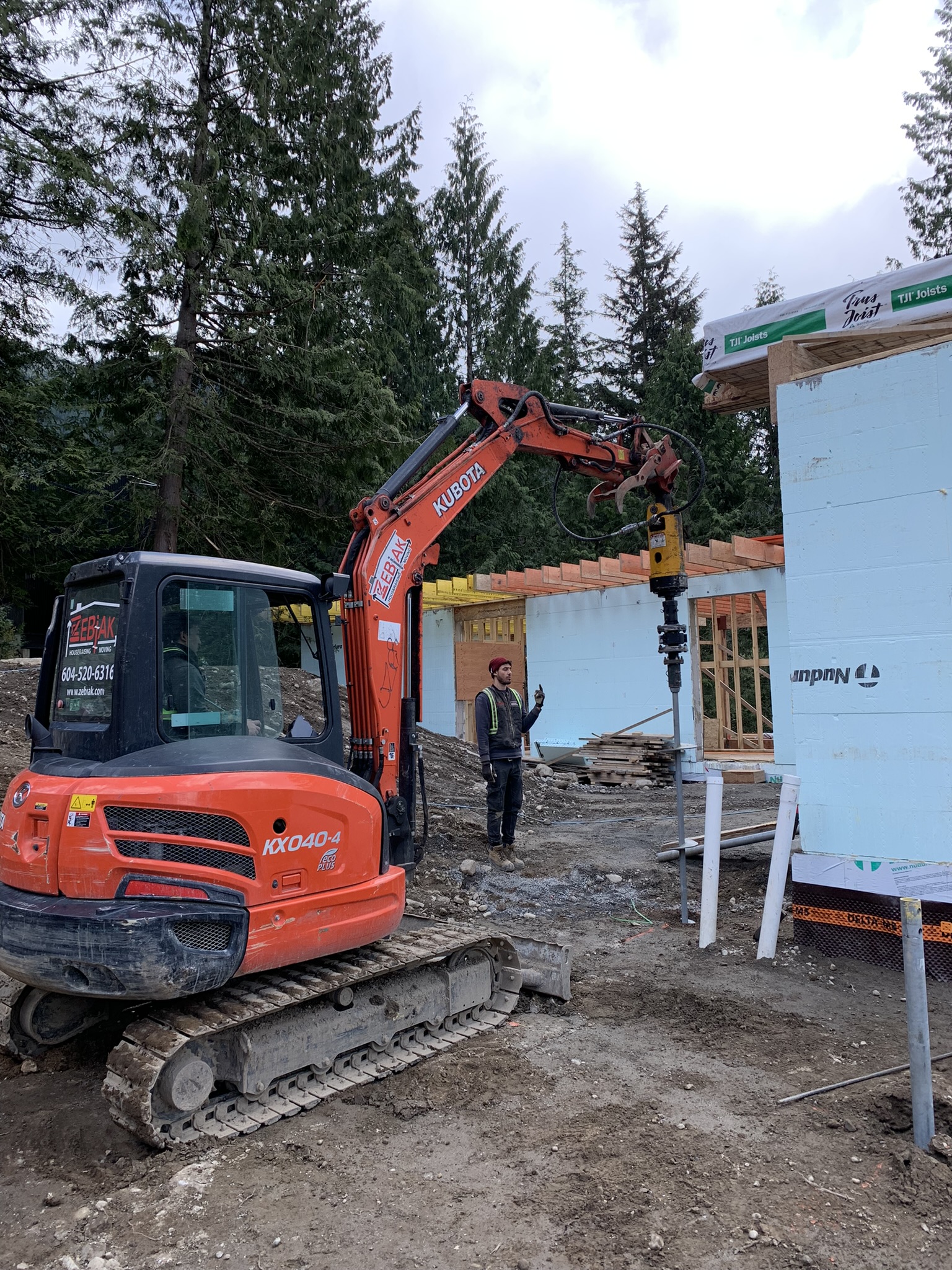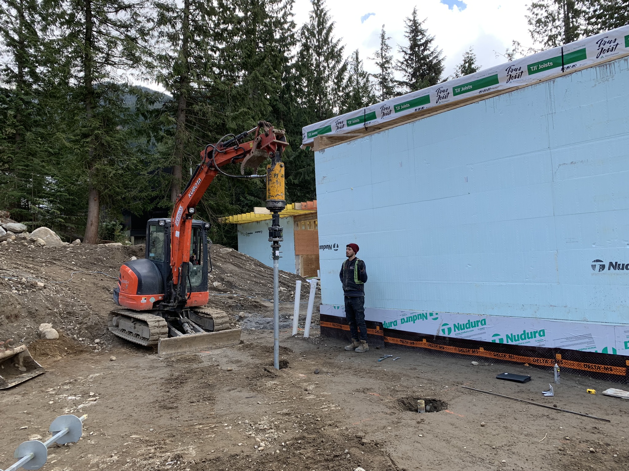 Zebiak was hired to install 6 helical piles for a deep foundation of a tiered retaining wall that supports a driveway on a steep slope. Due to the cobble prone subgrade a Chance SS to RS transition pile was selected. Piles went to approximately 15’ in depth for a capacity of 40 Kips.