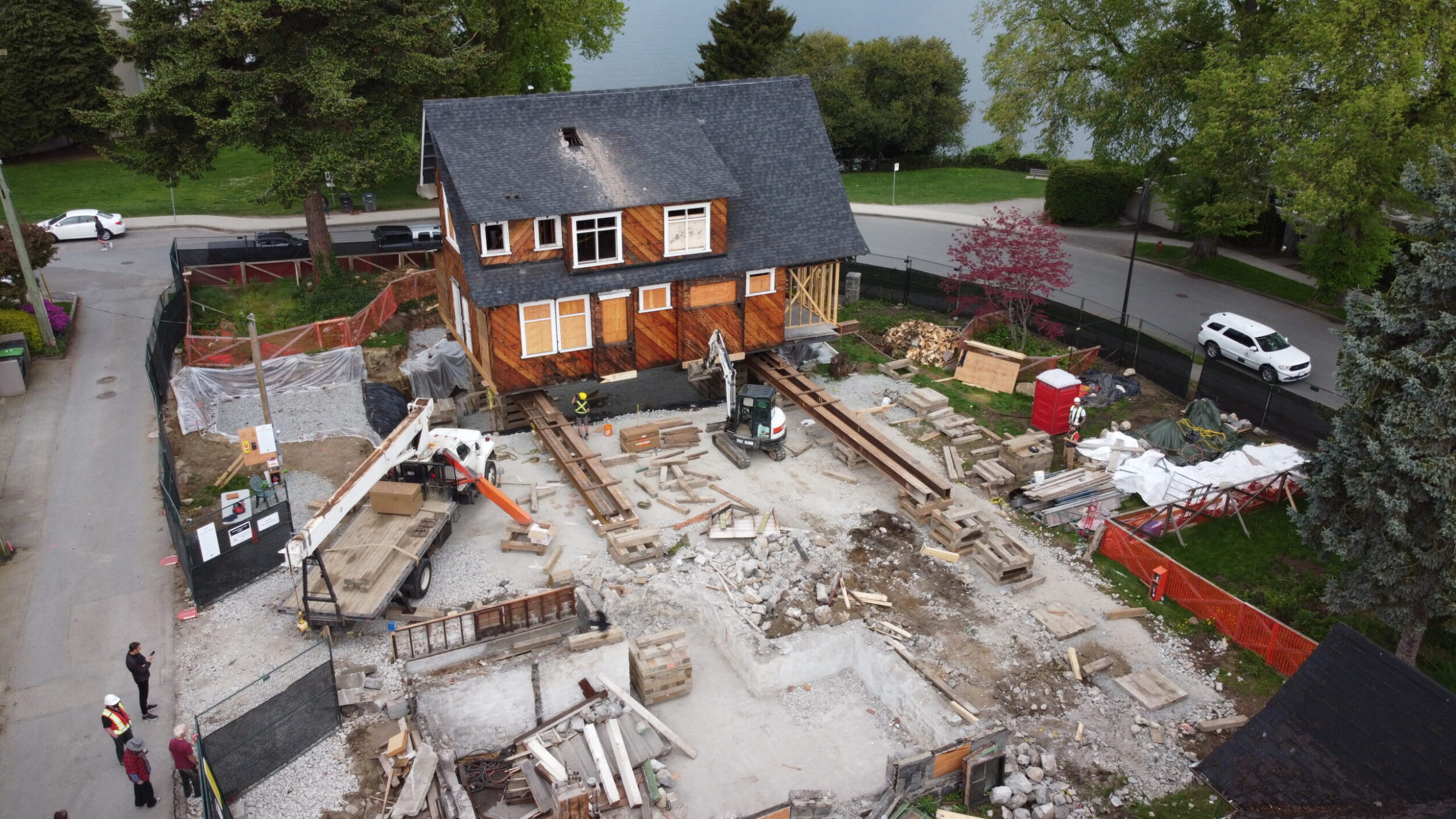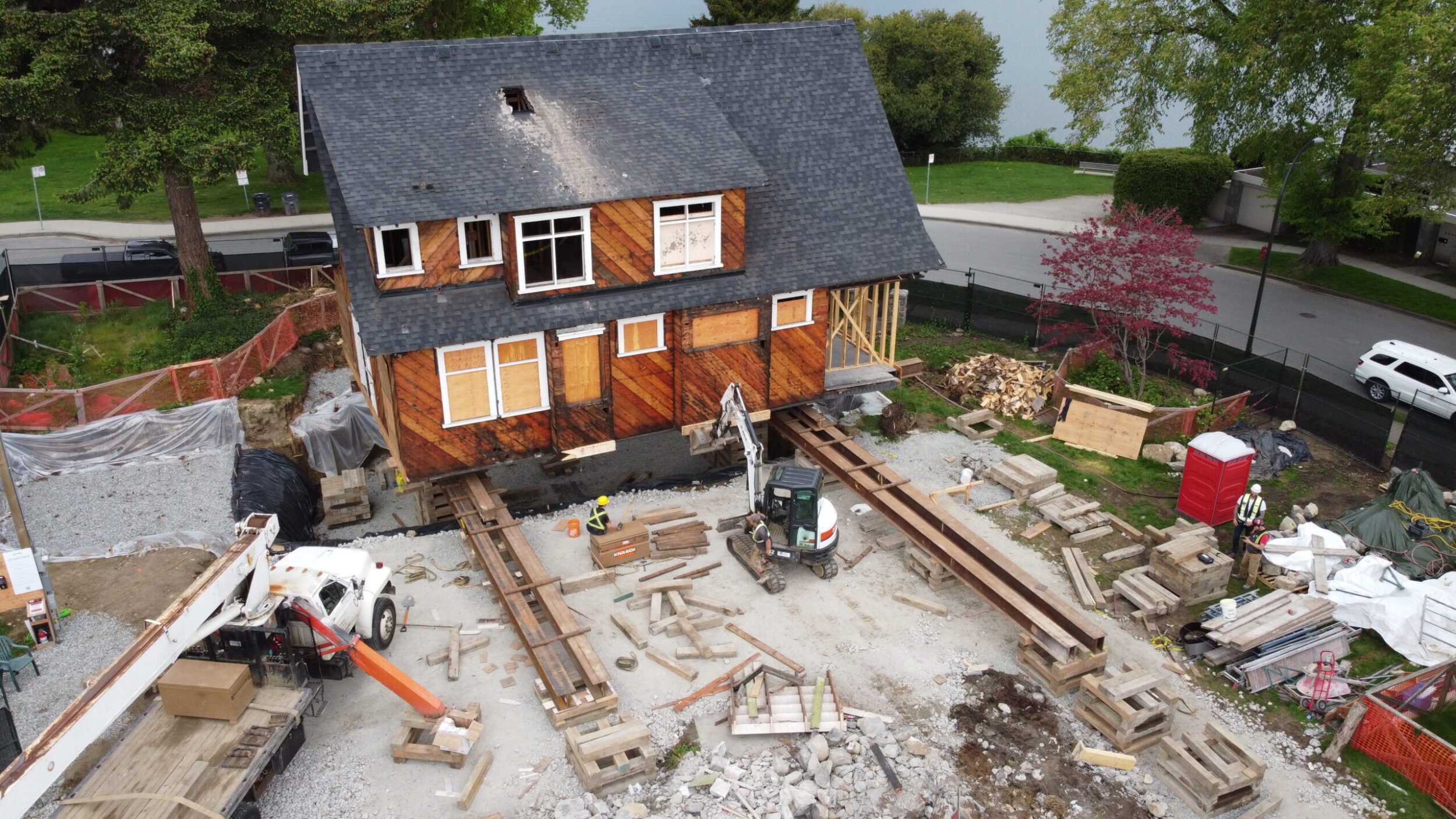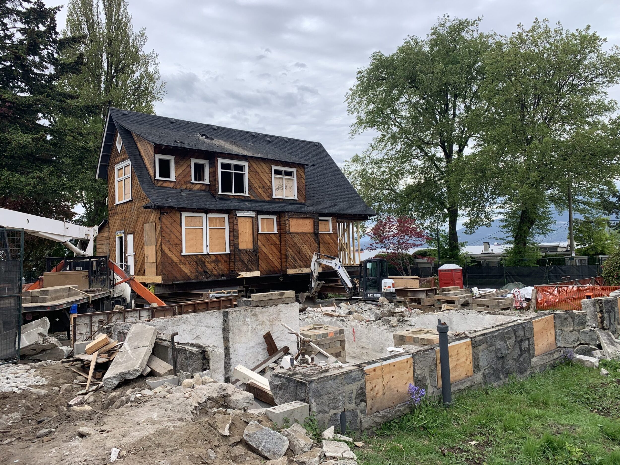 Zebiak worked in conjunction with ETRO construction to lift and move a heritage house on a very unique piece of property near Kits beach on Vancouver’s prestigious Point Grey Road. The house moved 30 feet North and 80 feet West to the absolute corner of the property. This movement allowed for the subdivision of this property into 5 lots (1 with Heritage House, and 4 new lots for new construction).