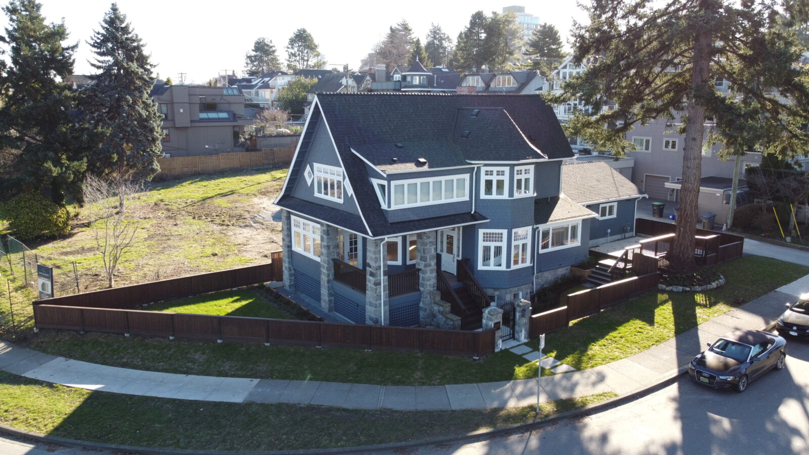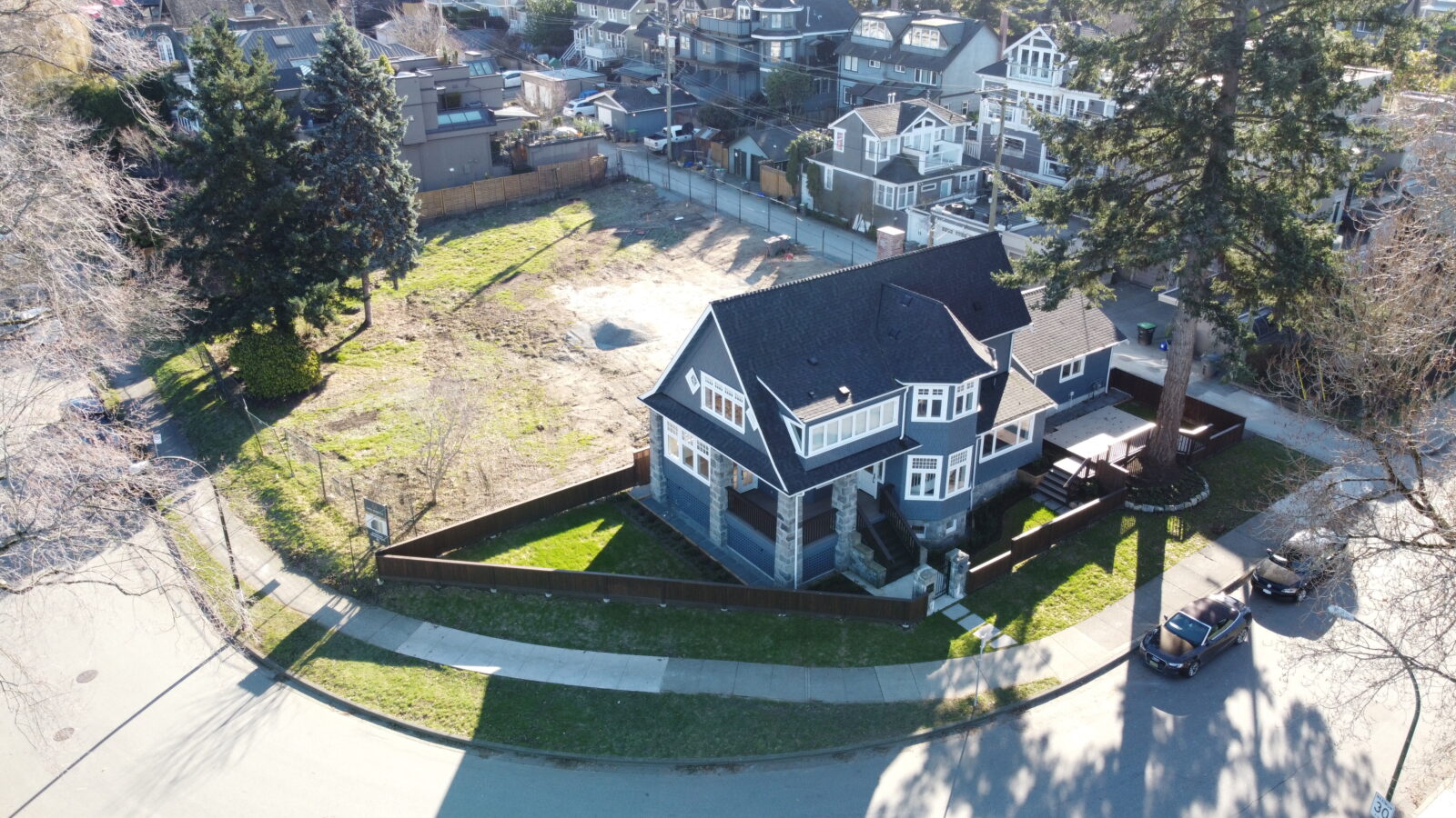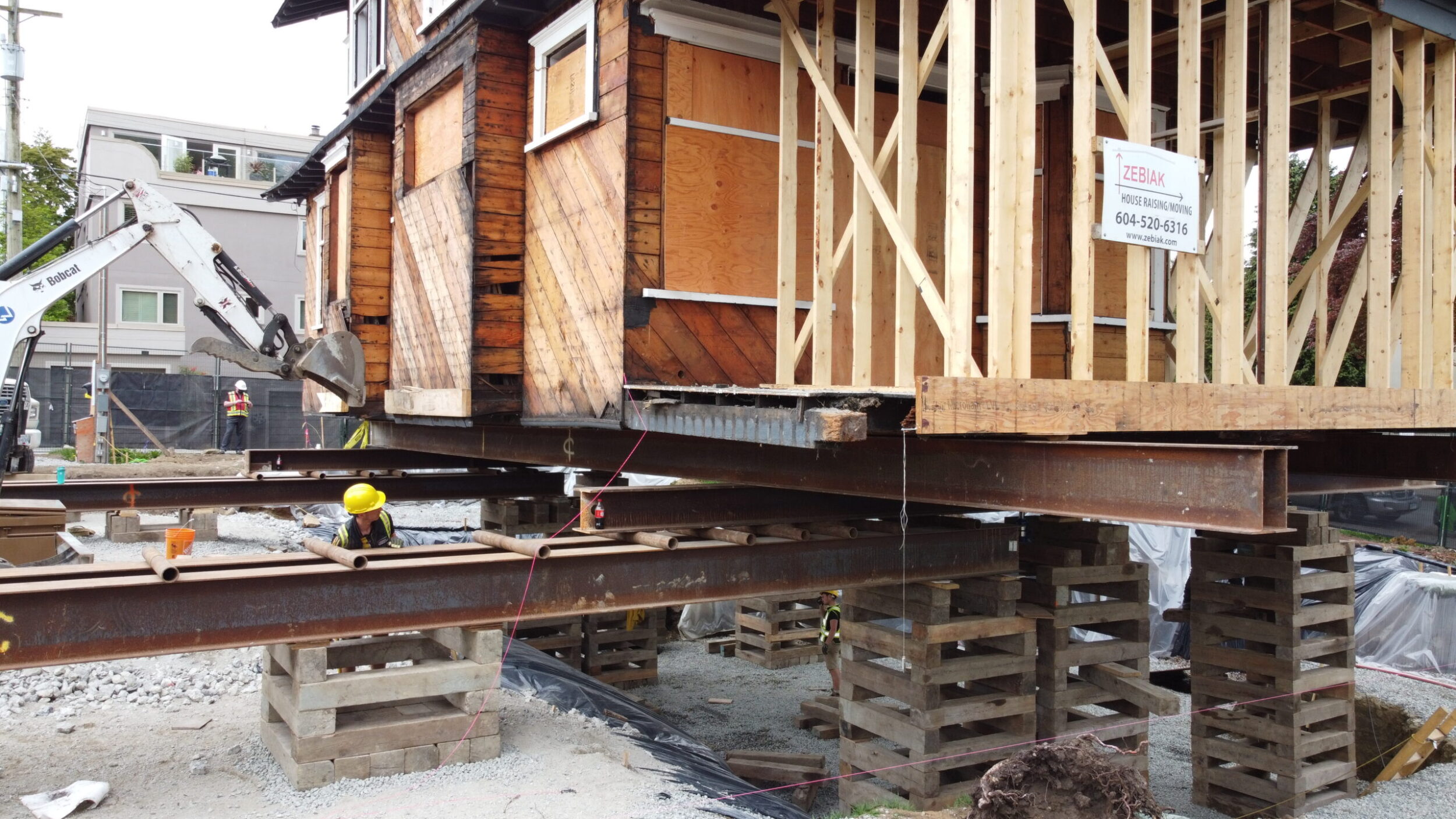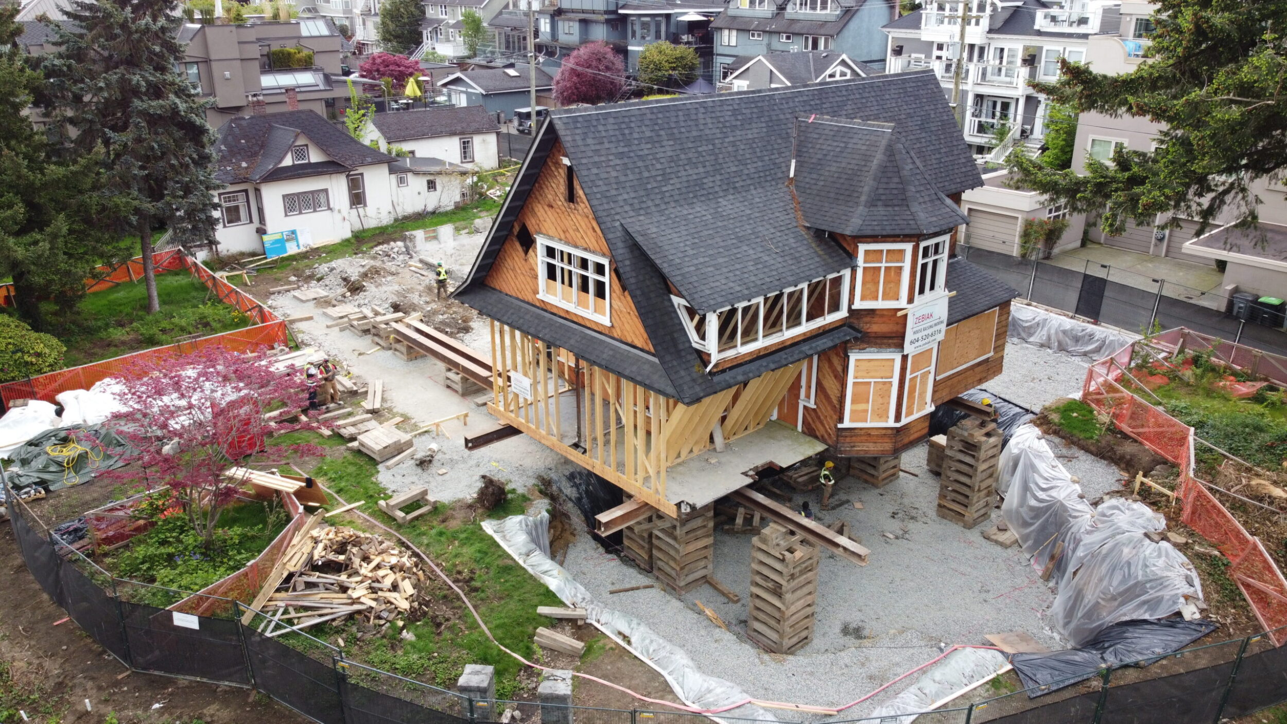Zebiak worked in conjunction with ETRO construction to lift and move a heritage house on a very unique piece of property near Kits beach on Vancouver’s prestigious Point Grey Road. The house moved 30 feet North and 80 feet West to the absolute corner of the property. This movement allowed for the subdivision of this property into 5 lots (1 with Heritage House, and 4 new lots for new construction).