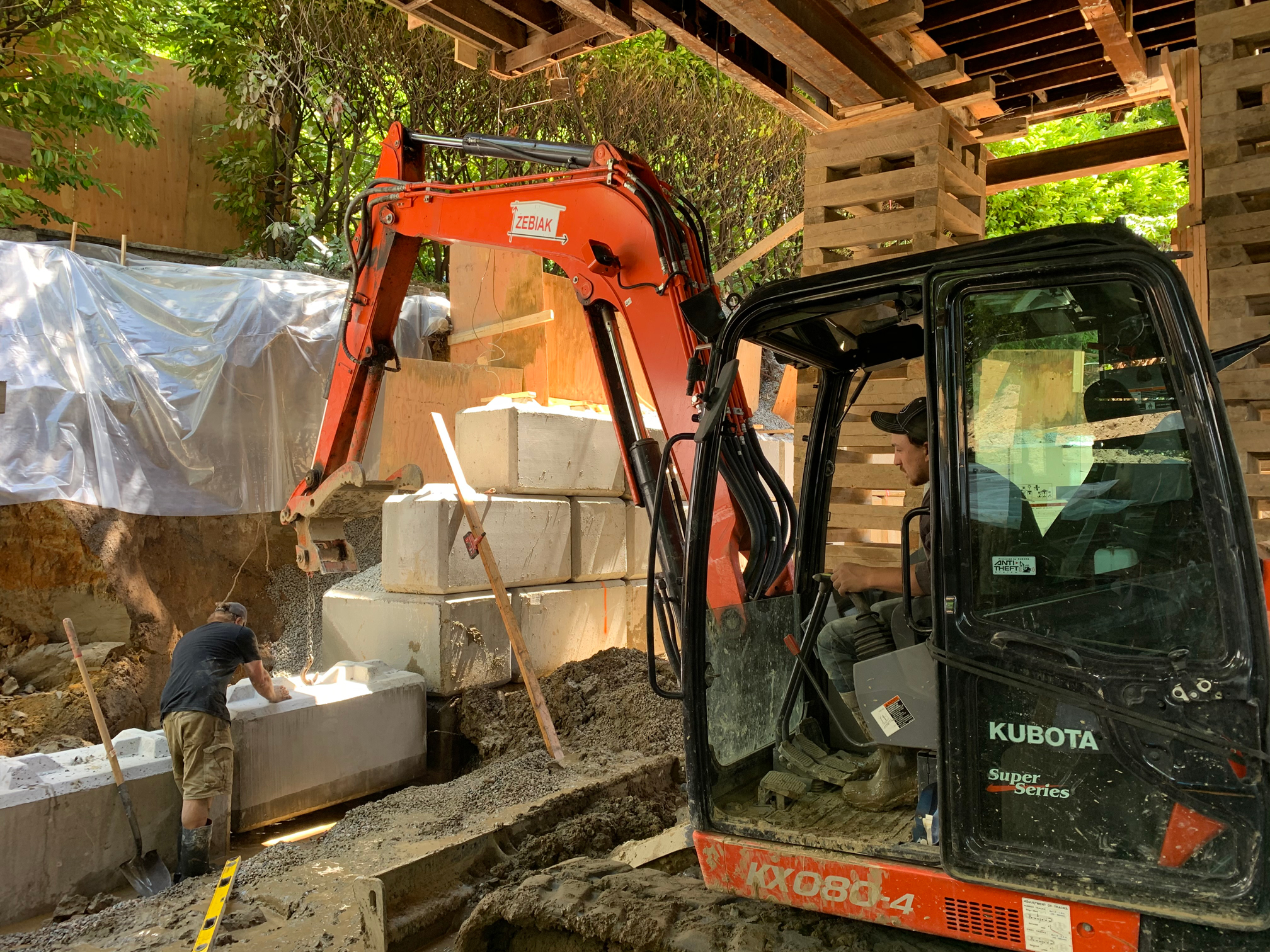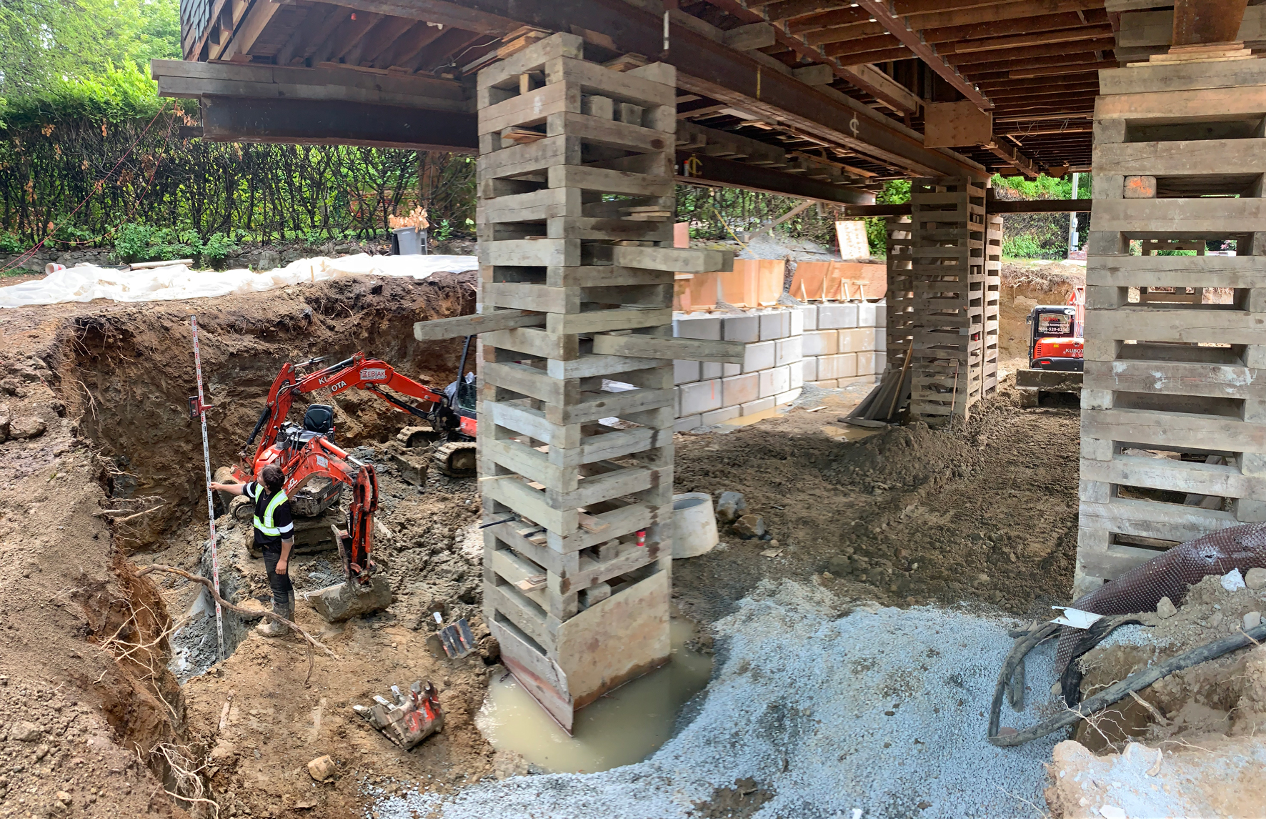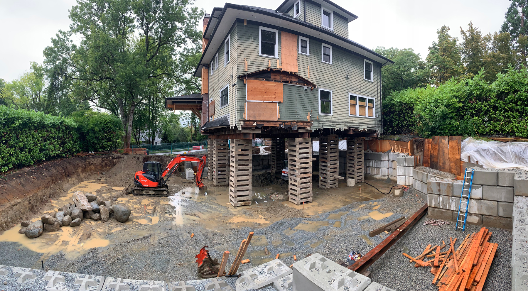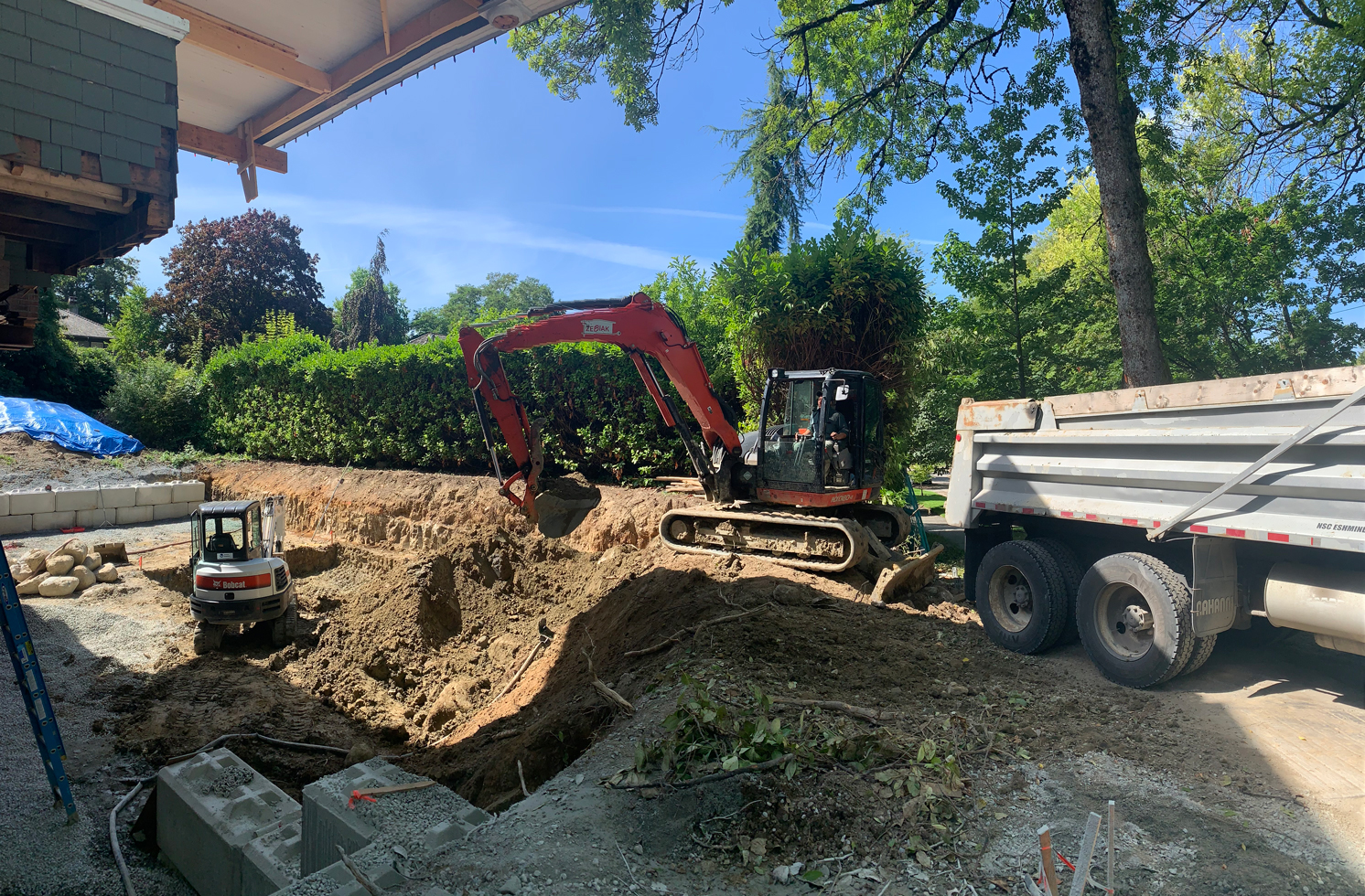 Zebiak supplied a full range of services on this Vancouver project. The excavation scope of work really stood out on this one; an underground stream was encountered running through the property. This made excavating extra challenging. Zebiak’s experienced crew excelled in keeping this site tidy and organized while hauling out over 200 dump trucks loads. We worked in conjunction with engineers to design and install a LockBlock SOE system to secure the East and South sides of this excavation that were getting eroded by the constant flow of the underground stream.